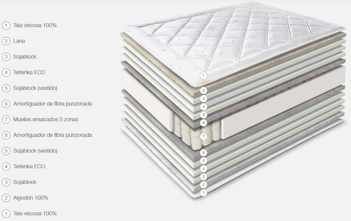 El matalàs de molles ensacades model Sfera Firm de la marca Astral Nature, fabricat amb productes naturals, L'interior del matalàs SFERA FIRM incorpora una capa de Sojablock, una escuma d'alta resistència elaborada amb olis vegetals de soia. Aquest material garanteix una gran adaptabilitat, evita deformacions i aporta al matalàs una suavitat extra. A més, les seves cares d'hivern i d'estiu, confeccionades amb fibres naturals, asseguren un equilibri perfecte entre el confortable i el natural.Fermesa: AltaAltura: 28 +/- 1 cm.